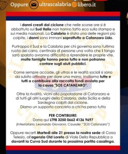 La raccolta fondi è già attiva. È possibile contribuire tramite donazione all’IBAN LT98 3250 0662 4136 9697, intestato a Leonardo Giovanni, con causale “SOS Catanzaro”, oppure partecipando di persona martedì alle ore 21 presso la sede di Corso Telesio, all’agenzia Old Loreto di Viale della Repubblica o davanti alla Curva Sud in occasione della prossima partita casalinga.