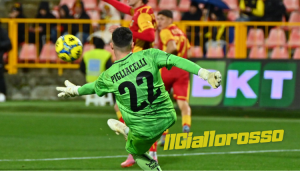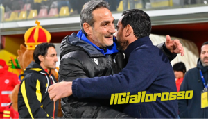 Al 20’ il primo squillo giallorosso. Favasuli lotta un pallone importante in corrispondenza del vertice alto dell’area di rigore, vince il contrasto ed entra in area di rigore: lo scarico è dietro per Iemmello che manca l’aggancio con la sfera, dietro rispetto al suo corpo già pronto per colpire la sfera.